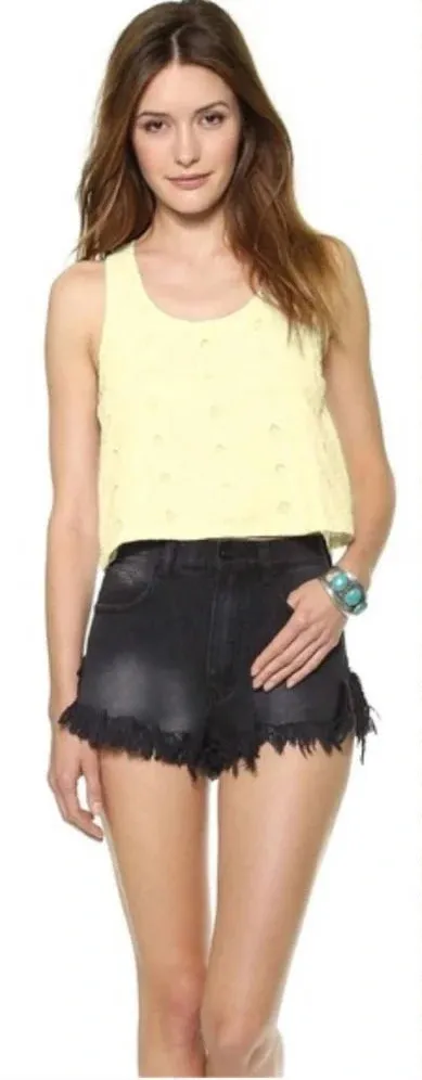House of Harlow 1960 Sunny Eyelet Tank. Cropped, scoop-neck, partially lined voile tank top with lea... Show more