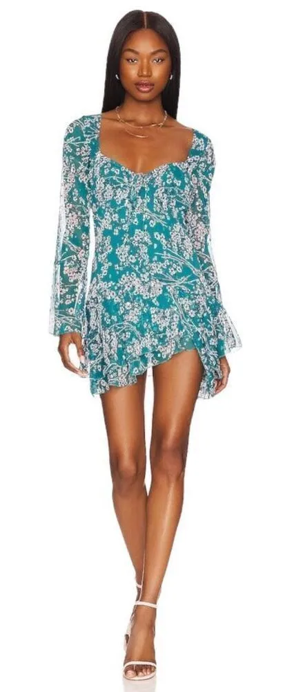 House of Harlow 1960 x REVOLVE Vaida Mini Dress in Teal Floral Multi Size XXS Color Teal Preloved **... Show more