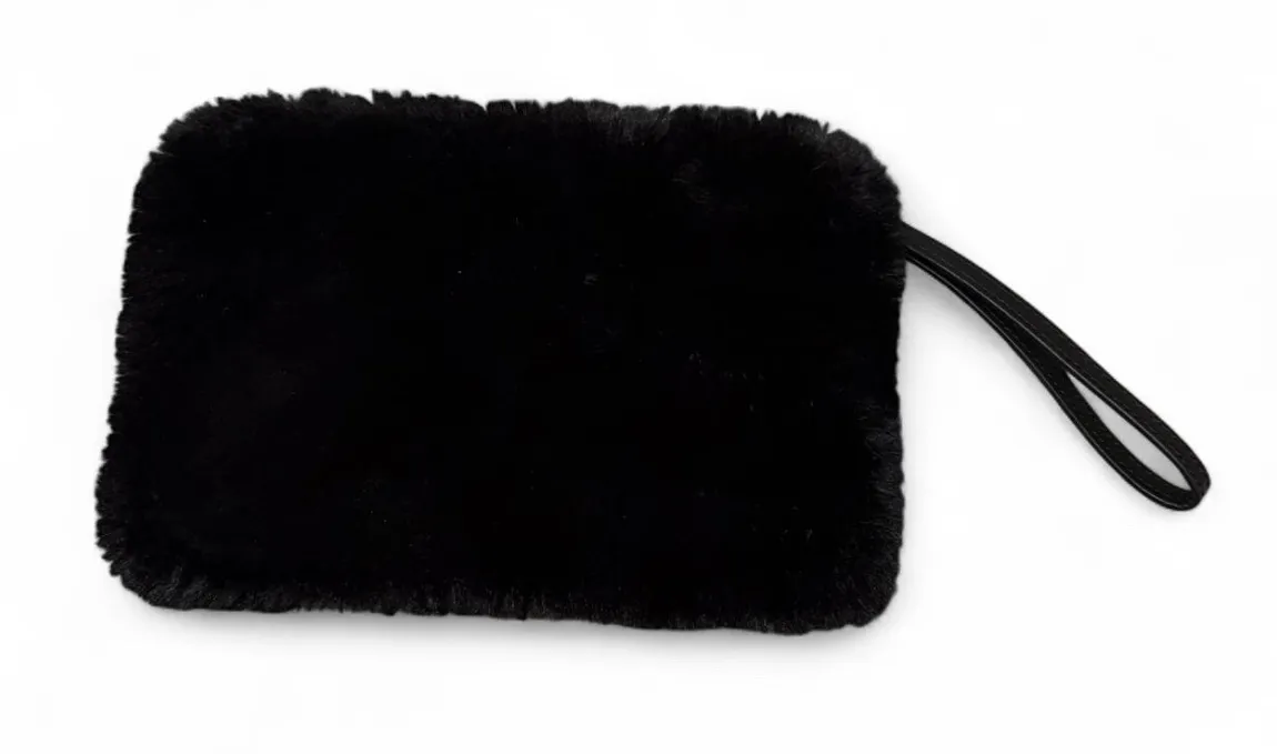House of Harlow Faux Fur Black Wristlet 1960 Soft Pouch Bag Zipper NWOT - $14 - From Keely