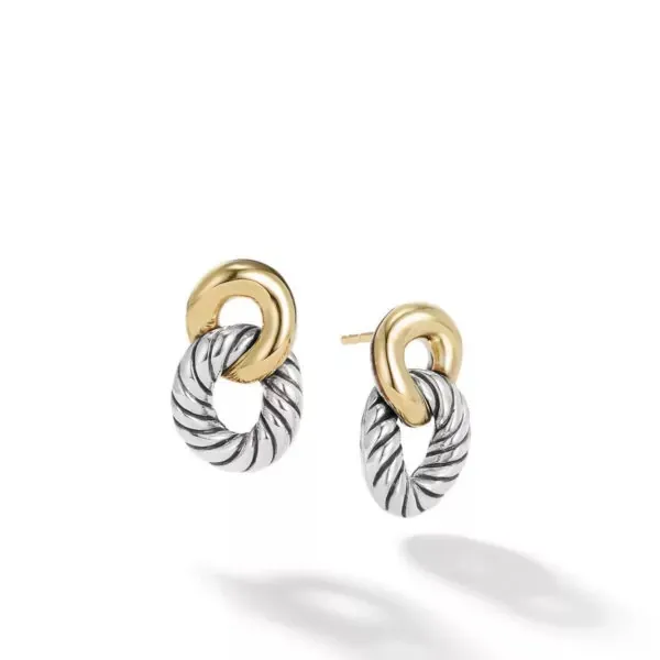 Chic intertwined design. Gold and silver finish. Inspired by equestrian tack. Each link is assembled by hand, creating a highly sculptural look. Post back New with reusable box.