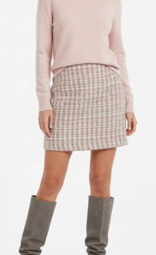 New with tags No flaws noted Originally part of a 2 piece skirt/jacket set. Jacket not included Color: Pixie Dust Style HH10112A 80% polyester, 10% rayon 10% metallic Fully lined Faux close front center pearl button accent Side hidden zip close Back side elastic waistband Gold metallic threading throughout 30” - 34” waist 16” length 38” hips