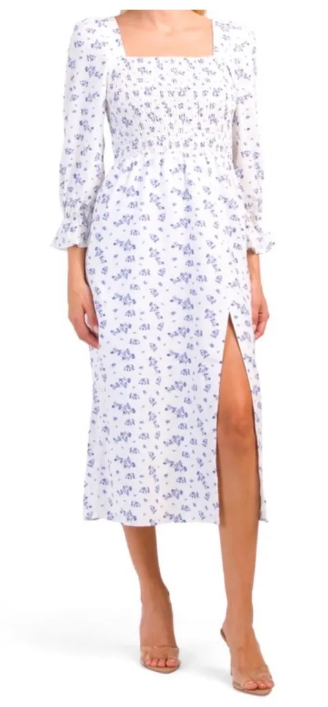 HOUSE OF HARLOW Women’s Floral Smocked Linen Blend Midi Dress White/Blue Size L White Size L - $60 - From Lana
