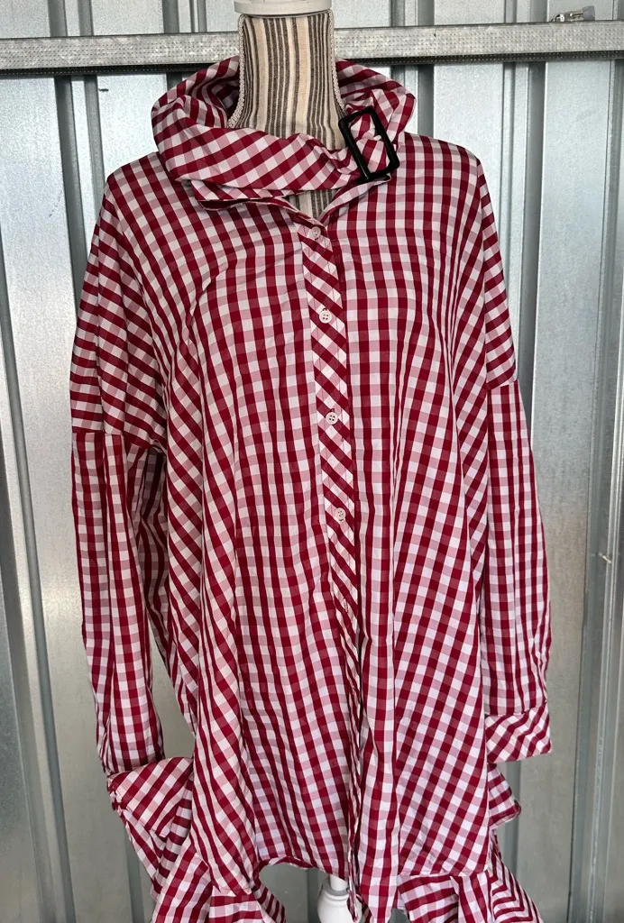House of Holland Red and White Checkered Women's Coat Size 6 - $34 - From Seyna