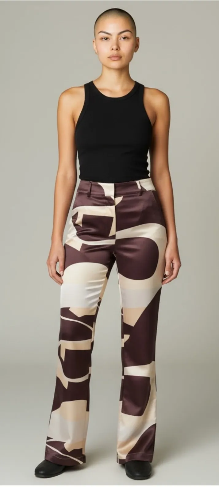 House of Sunny Highway Bold Print High Rise Satin Slight Flare Pant Size 4 Brown - $59 - From M