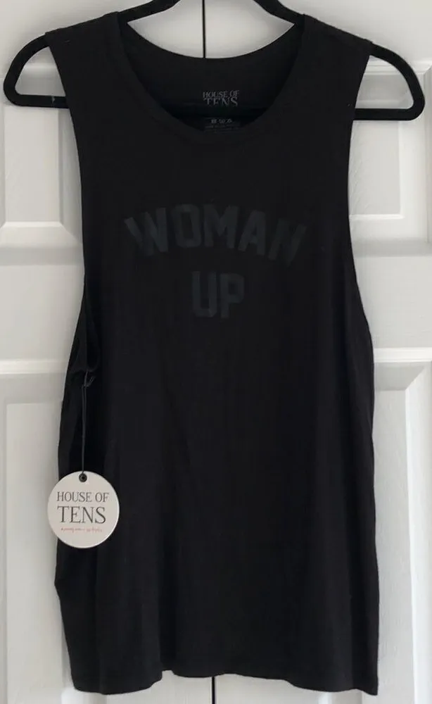 House of Tens Black on Black “Woman Up” Tank Top - Size XS - $29 New With Tags - From Melissa