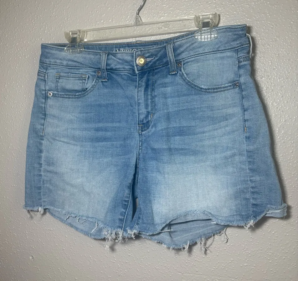 American Eagle Womens Shorts 8 Blue Denim Next Level Stretch Shortie Raw Hem Preowned in good condit... Show more