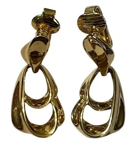 Vintage 1980s Double Oval Hoop Door Knocker Dangle Earrings Gold Tone Clip On - $10 - From Crestas