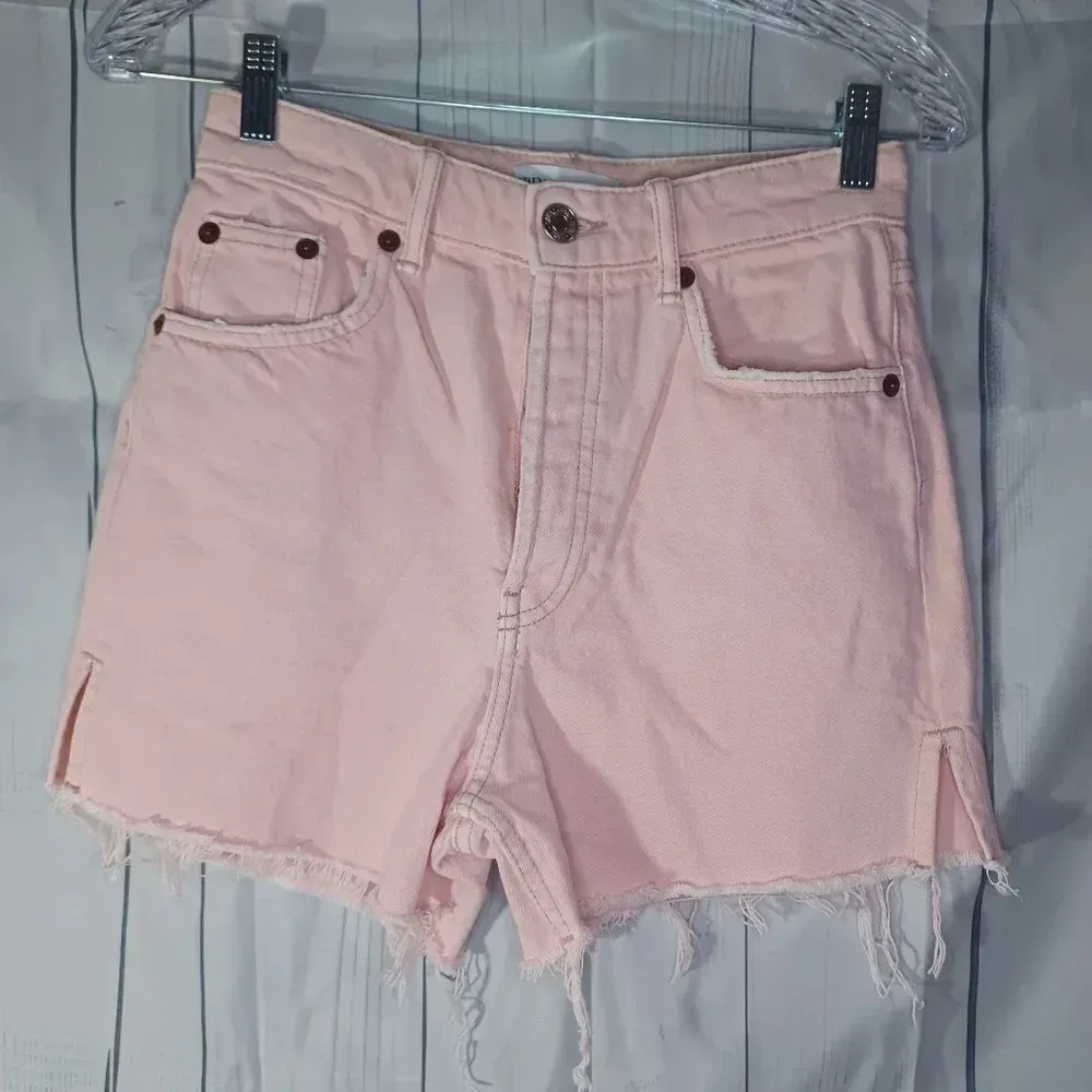 Zara pink Jean shorts with raw hem Size 2 Waist 25 my info 413 #Zara #Jean#Summer