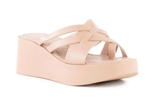 Seychelles Rock Steady Sandals in Blush Leather, Size 11 NEW without box Style your look in the monchromatic design of the chunky Seychelles Rock Steady heels. - Leather upper. - Synthetic lining and insole. - Slip-on style. - Round toe construction. - Asymmetric criss-cross strap. - Platform heels. - Synthetic outsole. Perfect for any occasion, these shoes offer both comfort and sophistication.
