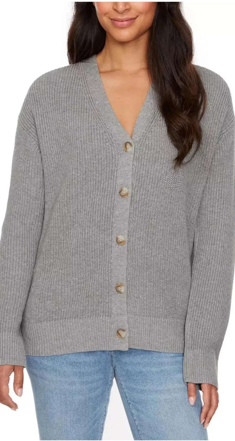 Excellent condition Hudson 100% Cotton Gray Button Up Knit Cardigan Sweater Women’s size Large Butt... Show more