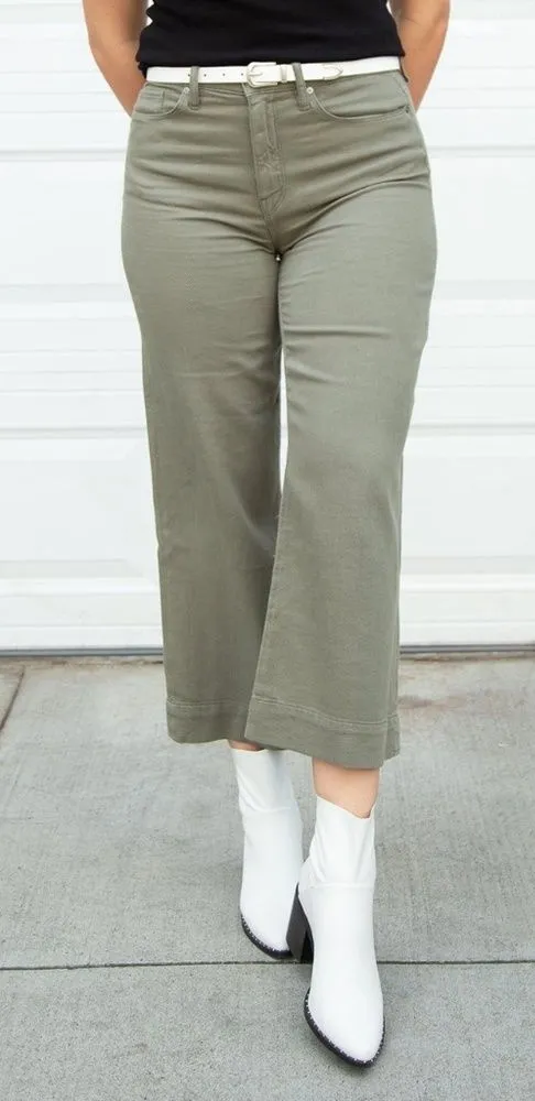 Pre owned Excellent Condition Color Green Size 28 Ultra High Rise Wide Leg Cropped Inseam 100... Show more