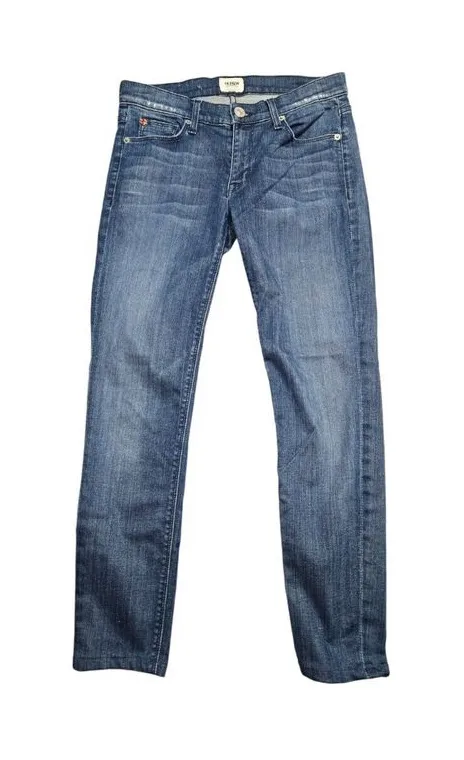 This Hudson Jeans pair is for women, featuring a dark wash and a straight leg style. Made in the USA... Show more