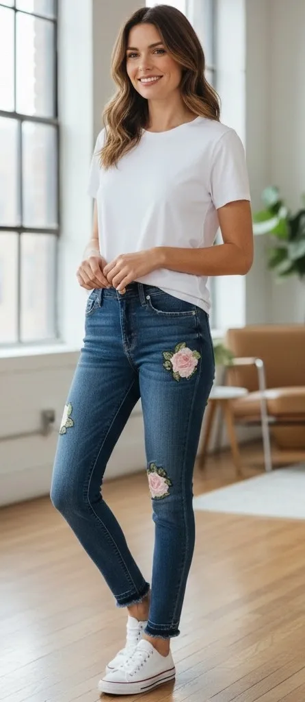 Rock these stylish Hudson jeans and elevate your denim game. Delicate pink roses bloom across the medium wash denim, adding a touch of feminine charm to the classic skinny silhouette. The frayed hem brings a touch of edgy cool, perfect for a casual day out or a fun evening with friends. Measurements: • Waist: 30 in • Inseam: 29 in • Rise: 10 in Style: Skinny Department: Women Fabric Wash: Medium Waist Size: 30 in Type: Jeans Accents: Embroidered Features: Distressed, Stretch, Pockets Fit: Slim Pattern: Floral Fabric Type: Denim Closure: Zip, Button Theme: Rose Season: Spring, Summer, Fall Pocket Type: 5-Pocket Design, Coin Pocket, Slash Pocket Keywords: Hudson Jeans, Skinny Jeans, Rose Patch, Embroidered Denim, Frayed Hem, Distressed Jeans, Designer Denim, Bohemian, Casual Wear, Street Style, Everyday Fashion, Floral Accent, Comfortable Fit