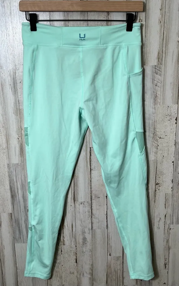 - great preowned condition. womens size medium. mid rise. mesh details on the sides. side pocket. waist: 14" rise: 10.5" Inseam: 25.5" leg opening: 4" -all flaws are pictured and/or described however please expect normal secondhand wear on all preowned items.