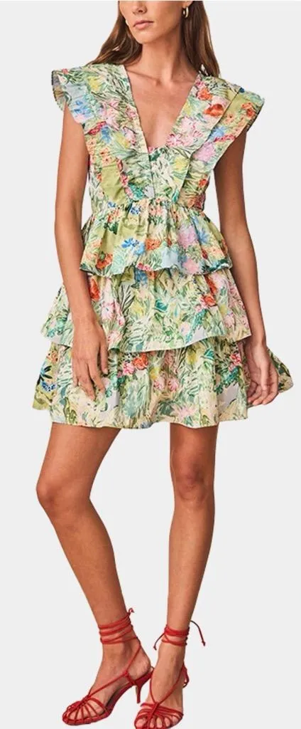 A standout Hunter Bell silhouette designed for spring events and summer celebrations. The Pamela Dress in the Garden Party print features cascading pleated tiers, a flattering V-neckline, and airy flutter sleeves that create beautiful movement with every step. Crafted in lightweight taffeta with a tailored yet playful fit, this dress delivers the signature Hunter Bell blend of femininity and structure. Perfect for weddings, brunches, garden parties, or vacation styling. Details • Designer: Hunter Bell • Style: Pamela Dress • Print: Garden Party floral • V-neckline, cascading pleated detail • Pleated flutter sleeves • Angled empire waist for a flattering fit • Tiered A-line mini skirt • Invisible back zip, hook & eye closure • Lightweight taffeta fabrication • Fully lined • Approx. 34.5” from shoulder • Waist: 16.5” flat • P2P: 19” flat • 100% polyester Size & Condition • Size: Women’s 10 • Condition: Like new, no visible wear or flaws Retail Price: $465 Hunter Bell dress, Pamela dress, garden party dress, floral mini dress, tiered dress, pleated dress, flutter sleeve dress, spring wedding guest, summer event dress, brunch dress, fit and flare dress, designer floral dress, size 10 dress