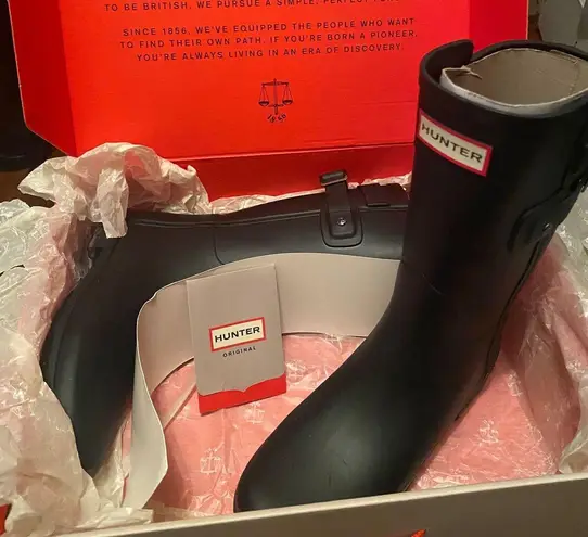 Black hunter rain boots. Mid length. Very cute for a rainy day. Only worn a couple times, they was... Show more