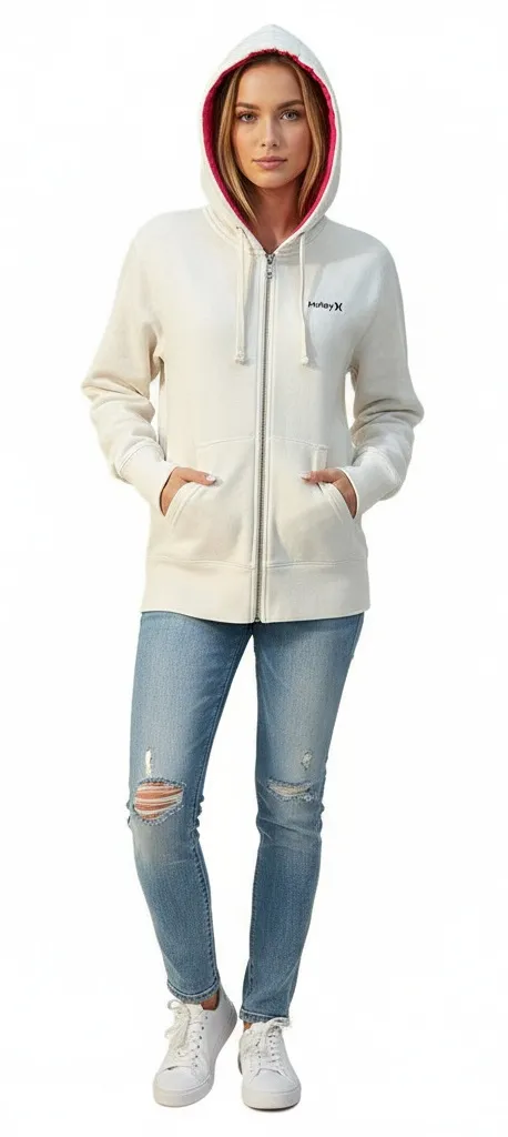 This Hurley women's full-zip hoodie in cream is the perfect blend of comfort and surf-inspired style. Featuring the iconic "HURLEY" logo across the chest, it's ideal for layering on cool days or after a beach session. Its relaxed fit and cozy feel make it a versatile addition to any casual wardrobe. * Condition: Pre-owned. Flaw: The silver “HURLEY” across the chest is dull. * Content: * All measurements are laid flat and approximate: Shoulder 12” • Chest (P2P) 17.5” • Length 22” * Please review the size and pictures closely before purchasing. * NO RETURNS ***Item: 0519 All items are loaded with clear, detailed pictures, pre-checked, firmly well packed, bagged or covered with foam/bubble wrap, and sealed with extra taping. Images and recorded support items with a video before packaging and after for your security protection and mine! TAGS: casual, weekend, beach, travel, streetwear, gym, lounge, daily, comfort, sports, outdoor, college, spring, summer, fall, autumn, athleisure, relaxed, cozy, surf, skater, beachy, sporty, minimalist, classic, effortless, preppy, softgirl, Y2K, retro, oversized, leggings, jeans, sneakers, t-shirt, women, teen, youngadult, layering, warmth, versatile, breathable, cotton, fleece, soft, activewear, everyday, stylish, essential, outerwear