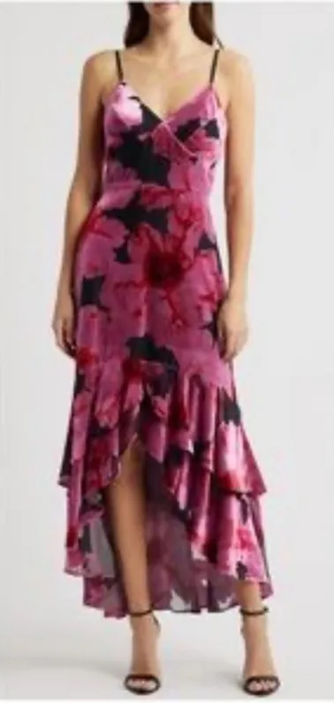 Beautiful HUTCH Floral Ruffle High Low Dress, New With Tags, size 6. Features a vibrant pink floral... Show more