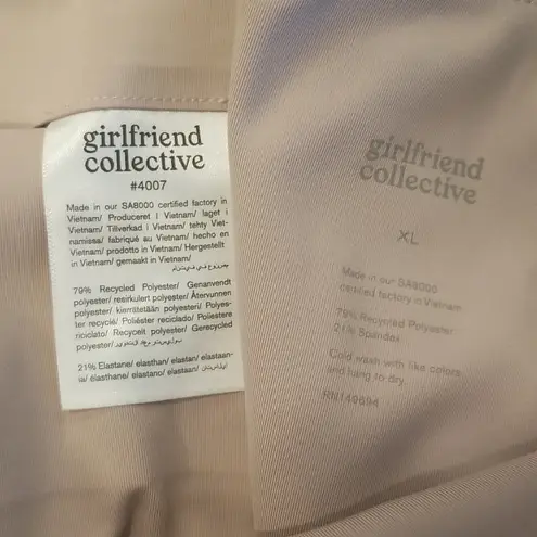 GIRLFRIEND COLLECTIVE Compressive High-Rise Legging ~ Full Length Quartz (light beige nude) XL New with tags An extra high-rise w/ four-way stretch & compressive fabric made from recycled water bottles — basically everything you need to get through your favorite high-impact activities like running, yoga & binge watching true crime Double-layered high waistband w/ interior pocket Each pair diverts 25 bottles from landfills 79% RPET & 21% spandex Waist 27" Rise 11" Inseam 28.5"