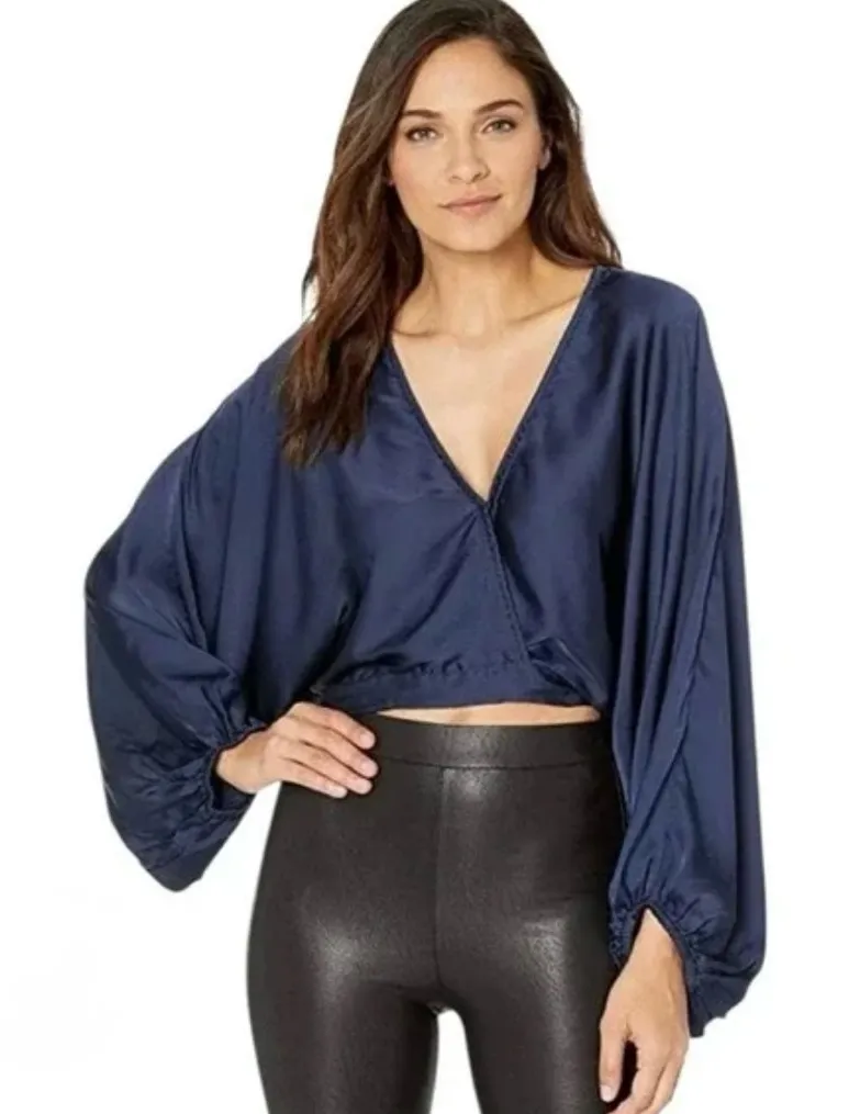 This stylish blouse features a V-neckline and bell sleeves, perfect for a trendy and feminine look.... Show more