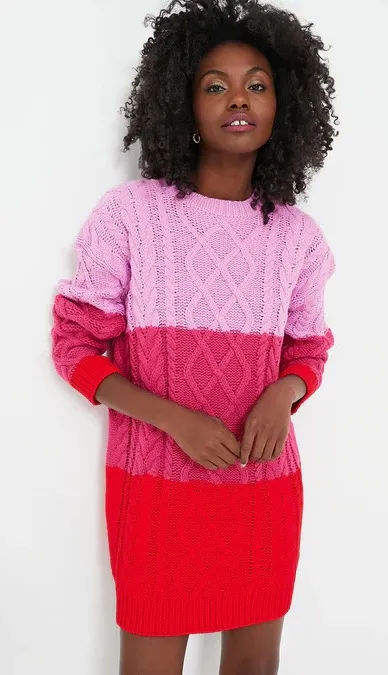 Hyacinth House Color Block Scarlett Sweater Dress in Pink and Red Multi Size Small Excellent Used Condition CARE Hyacinth House represents classic femininity while edging on the side of flirty, bohemian, and playful. Through vibrant florals, textured ruffles, and bold patterns, the collection inspires women to embrace their romantic and whimsical side, seeking adventure, excitement, and celebration. Add a pop of color to your wardrobe with the Scarlett Sweater Dress. Crafted out of cheery pink and red color-blocked hues, this cozy cable-knit mini is sure to be on repeat this season. Pair with classic ballet flats and tonal sunglasses for a laidback yet elevated ensemble that's perfect for everything from coffee runs to lunch with the girls. Crewneck Long sleeved Cable-knit texture Colorblocked Mini length Material: 100% Acrylic Care: Hand wash cold, hang to dry Sold by Tuckernuck Model Milan is wearing a size S Milan’s measurements: Height 5'9.5", Waist 23", Bust 32.5", Hips 33.5" No trades, offers welcome!