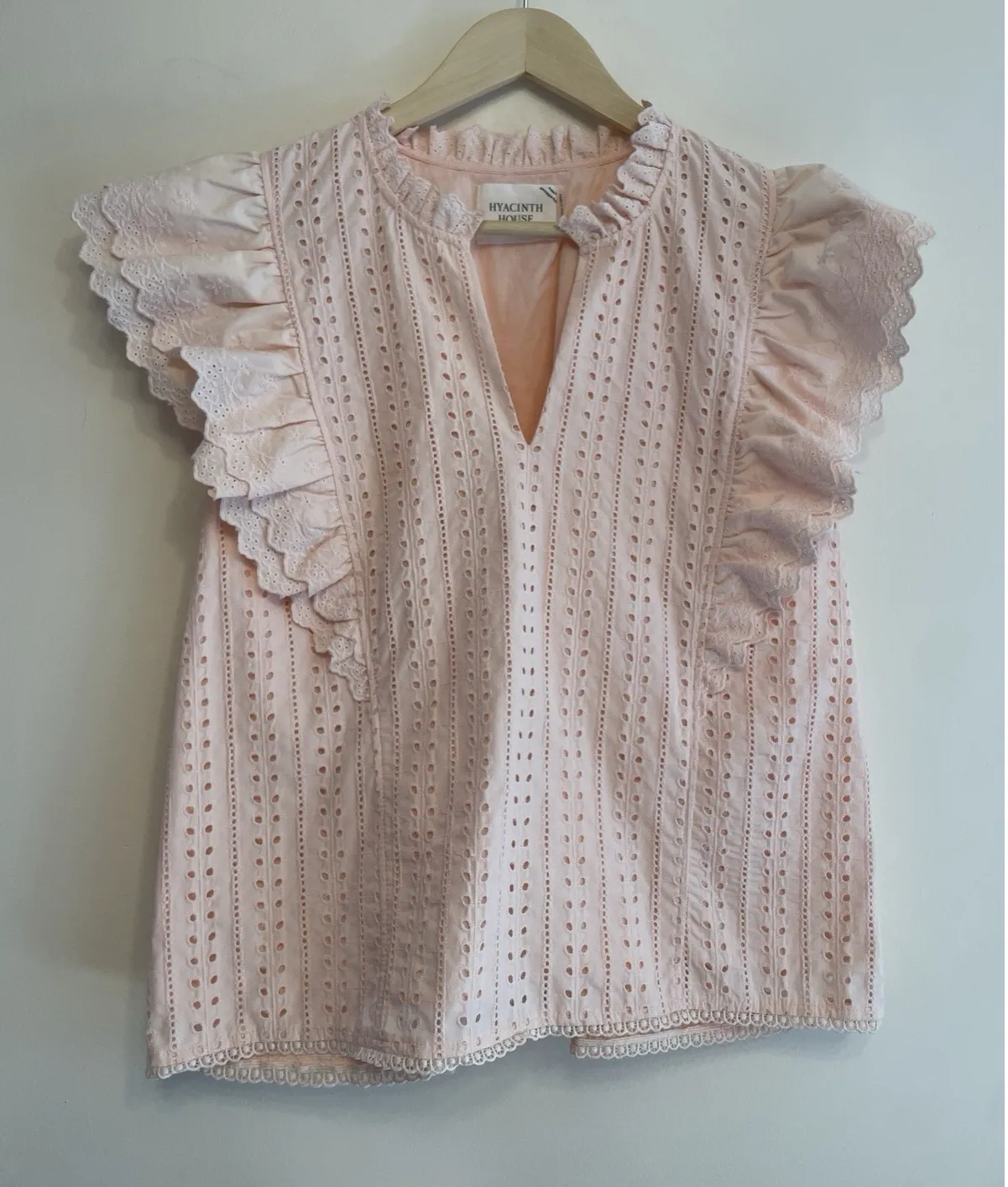 Hyacinth House Eyelet Balliet Top. Women Size XXL. Light Pink. Ruffles along neck and across front a... Show more