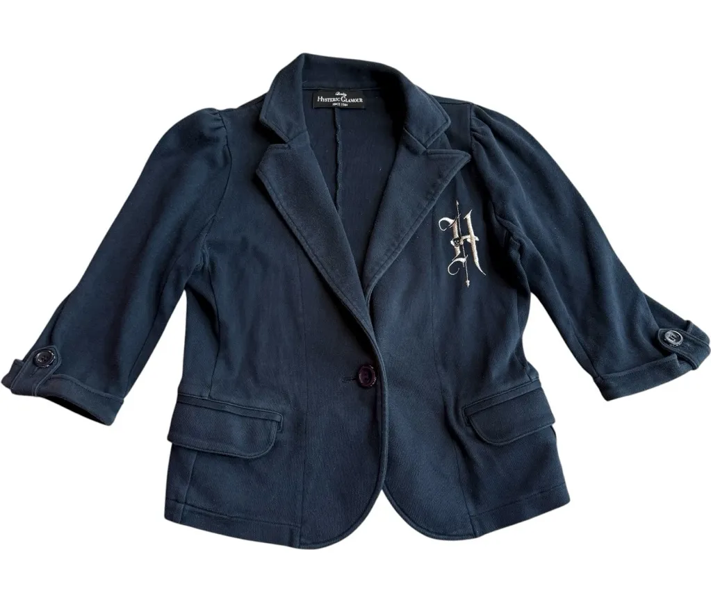 Hysteric Glamour XS School Uniform Style Blazer Academia Japanese Streetwear No size- measures like an XS See photos for measurements Preowned/gently used Light wash wear if any Ships fast! Ships from a smoke free home Keywords: school girl, edgy, whimsigoth, Wednesday Addams, academia, rare, streetwear, vintage