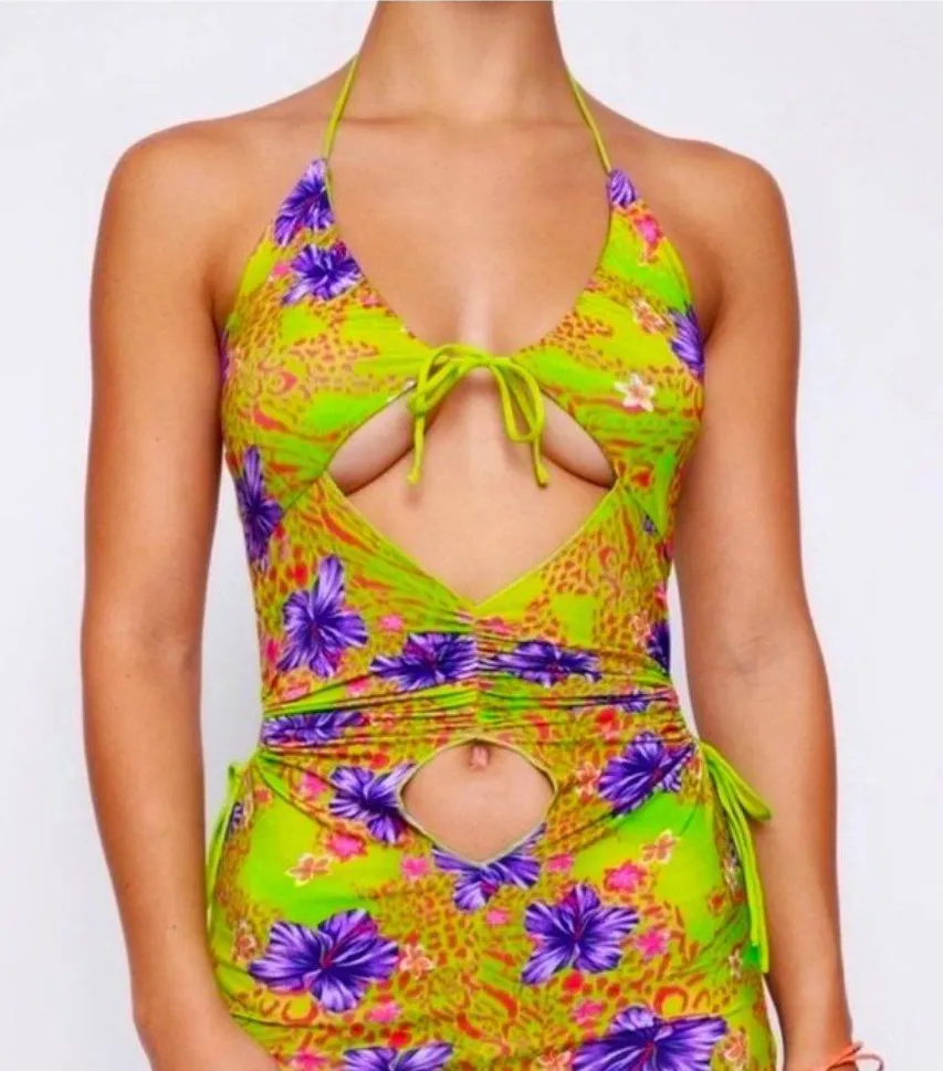 I. AM. GIA. Svana Hibiscus Print Cut Out Halter Mini Dress Bodycon Small NWT. This dress is made of... Show more