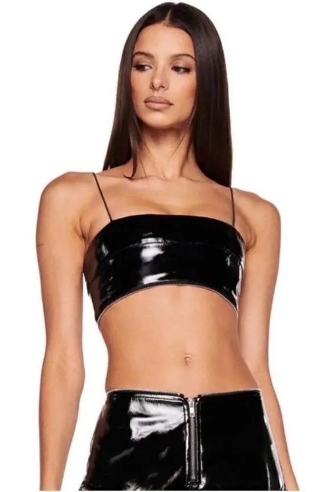 I.AM.GIA Isla Top Pleather Black Crop Top Medium Faux leather patent top Micro crop length and body... Show more