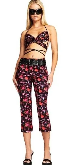 I Am Gia Size S Rylee Cropped Flare Pants Hearts Print Maximalist Kawaii Rave Brand: I Am Gia Con... Show more