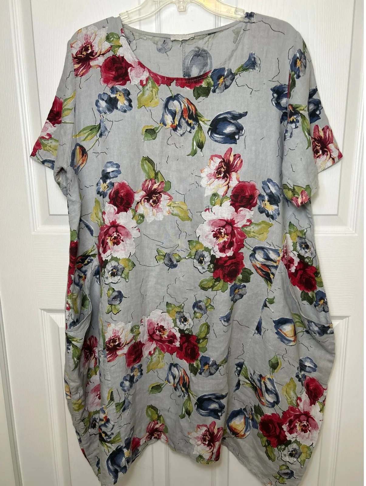 I Love Linen 100% linen dress, Made in Italy. Color: Blue floral print on light gray background Fe... Show more