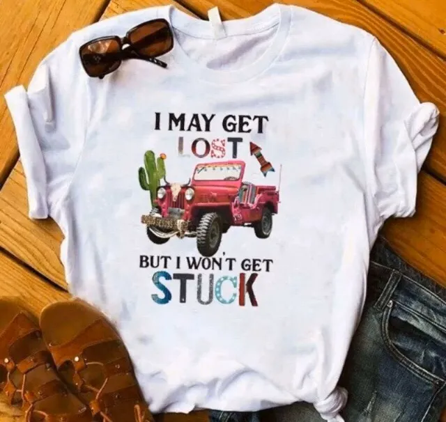 Women’s “I May Get Lost But I Won’t Get Stuck”, Print T-shirt. Size Large. Measures: Length 26”, C... Show more