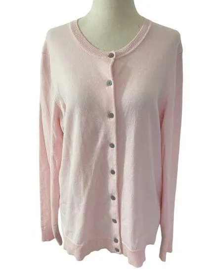 15-1 Karen Scott Pink Cardigan Women Size Large Preowned Size: L Color: Pink Type: Sweaters Department: Women Style: Cardigan Neckline: Crew Neck Sleeve Type: Regular Sleeve Sleeve Length: Long Sleeve Pattern: Solid Material: 57% Cotton 26% Viscose 17% Nylon Garment Care: Machine Wash Country/Region of Manufacture: China Please check photos for measurements and more description of the item.