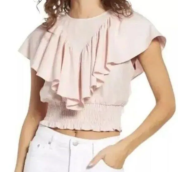This OPEN EDIT Pink Lotus Ruffle Linen Blend Keyhole Crop Top is in excellent preowned condition. It is a women's size XS. Elastic bottom with top ruffle, keyhole back with button closure, extra button included, flutter sleeves. 55% linen, 45% viscose. Machine washable. Laying flat and unstretched, it measures approximately: 17" from pit to pit 16" from neckline to hemline All items come from my SMOKE FREE home! open edit, summer, bohemian, feminine, breezy, sexy, beach, vacation, hippie chic, travel, shower, picnic, boho, parisian, timeless, pastel, dainty