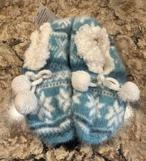New MUK LUKS Women's Pom Ballerina Slippers Lukees Size S/M 5-7 NWT Blue Snow - $15 New With Tags - From Angela