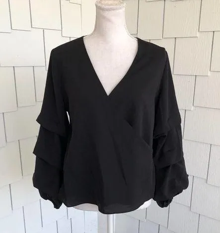 Brand new with tags Bar III Tiered Sleeve Faux Wrap Top Color: Black Long sleeve V-neck Size Medium
