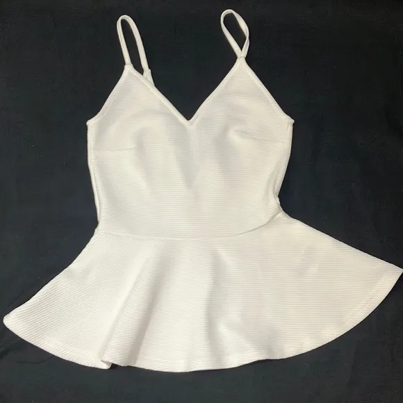 • H&M Divided white peplum style top • Sleeveless top • White top • Ribbed like fabric • V cut in... Show more