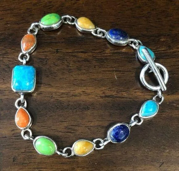 BARSE Designed and Crafted Sterling Silver Bracelet Genuine Turquoise Semiprecious Stones Lapis, Coral, Turquoise, Chalcedony, Yellow Jasper, Mohave Turquosie Sterling Silver Toggle Clasp Beautiful Design and Colors Coordinating “Barse” Turquoise Strand Necklace and Earrings Listed Separately Colors May Differ Based On Shadows, Lighting, Monitor and Display Settings Ask Questions and/or Request Additional Photos, Measurements as Needed $320