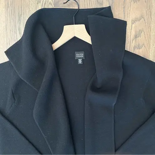 Eileen Fisher wool heavy weight draped collar open front cardigan sweater. In black. 100% wool. Gorg... Show more