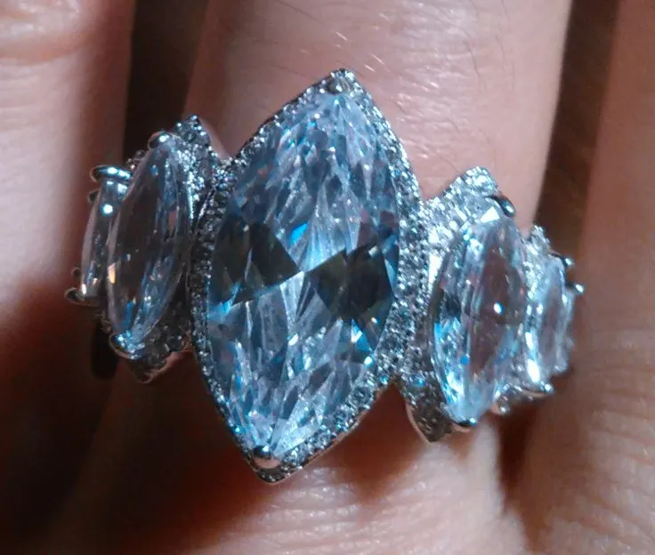 This beautiful ring features the gemstone white cubic zirconia in a multi-stone design. The ring is set in rhodium over 925 sterling silver and is size 8. 10.41 ctw. Brand new. B19