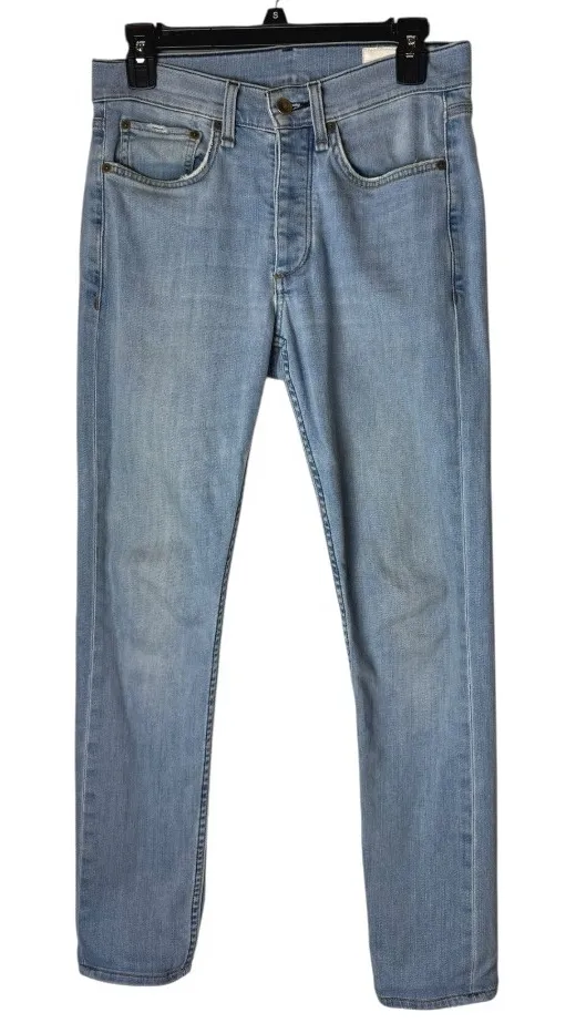 Classic denim reimagined, these light wash jeans from Rag & Bone feature an extra slim fit for a modern silhouette. The jeans are designed with a button fly closure and a traditional five-pocket style, complete with the brand's signature minimalist detailing on the back pocket.