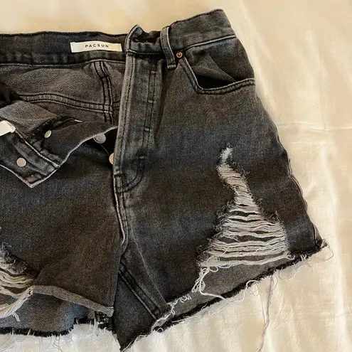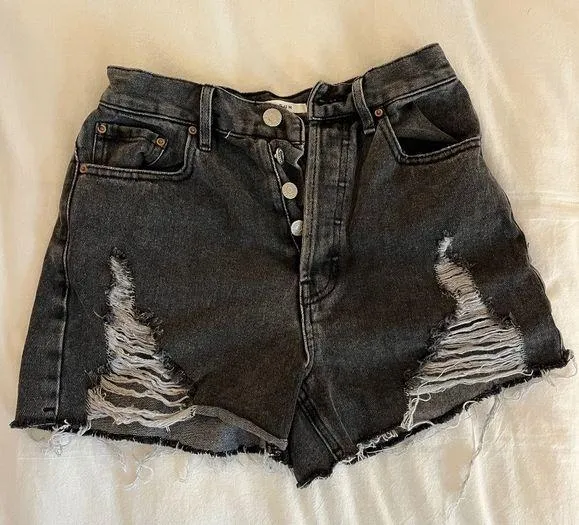 PACSUN Denim Shorts 25 Womens Black Wash Raw Hem Button Fly Ultra High Rise PACSUN Denim Shorts 2... Show more