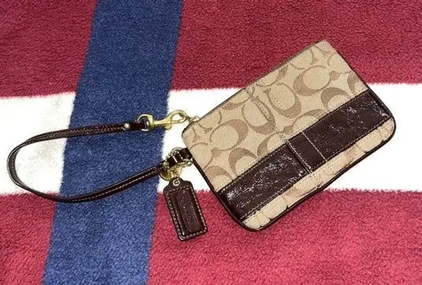 Coach Signature brown Patent Leather Wristlet coin purse J0849-41637 4x6” Tan - $30 - From Kristal