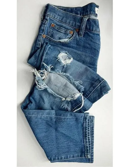 Medium Wash Size 27 Destructed details. Hole in knee and distressed accents Slim Boy Jean Great pre... Show more