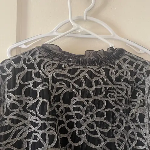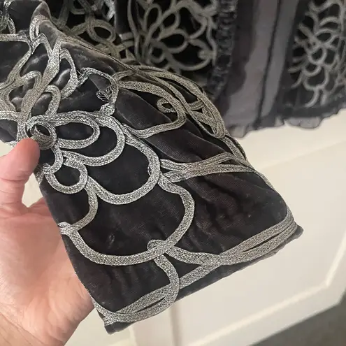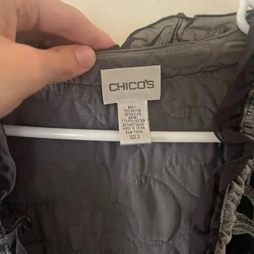 Stylish Chico's jacket with a unique pattern. Features charcoal and black tones.
