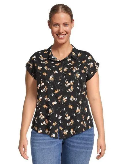 SEE MEASUREMENTS! NO BOUNDARIES Shirt Size 3X 23-25 Juniors Tie Front Black Floral New 100% Rayon fe... Show more