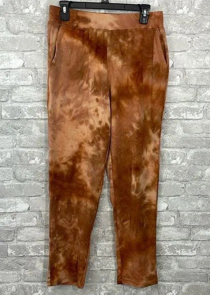 Fabrication: knit Features: tie-dye design, on-seam pockets, elastic waistband Rise: at the waist Fit: semi-fitted; follows the lines of the body with added wearing ease Leg Shape: straight leg; falls straight from knee to leg opening Inseam: 29"