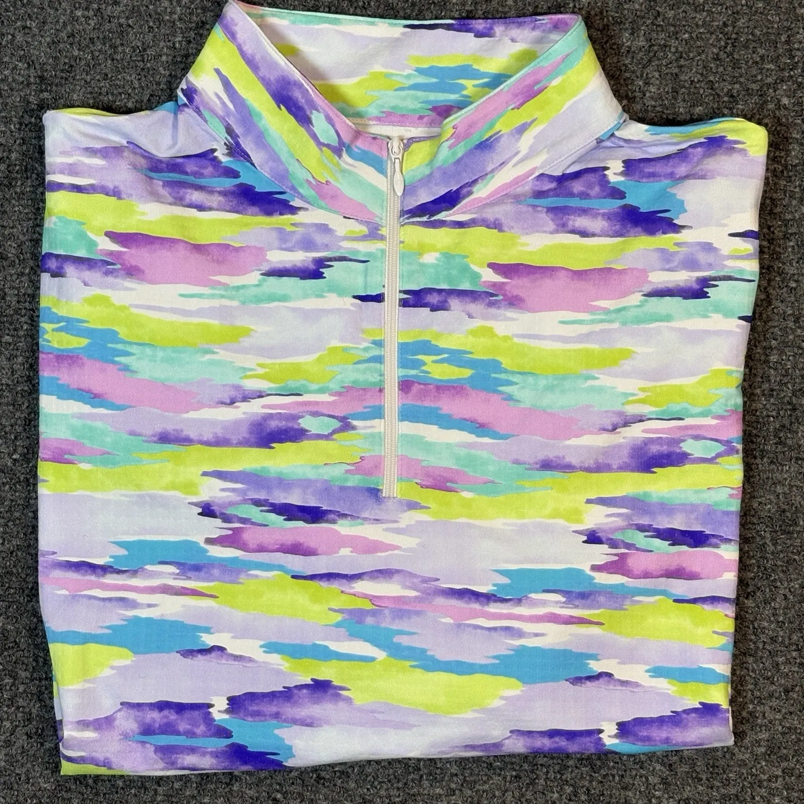 The IBKÜL Golf Fishing Shirt for women in size M features a multi Tie Dye pattern, making it perfect for outdoor activities like golfing or fishing. Made with a blended fabric with UPF 50+ and quick dry properties, this shirt offers both style and functionality. The quarter zip design, long sleeves, and breathable features ensure comfort in various seasons. Machine washable and with a regular fit, this pullover shirt from IBKÜL is a versatile choice for active women looking for a fashionable activewear top.
