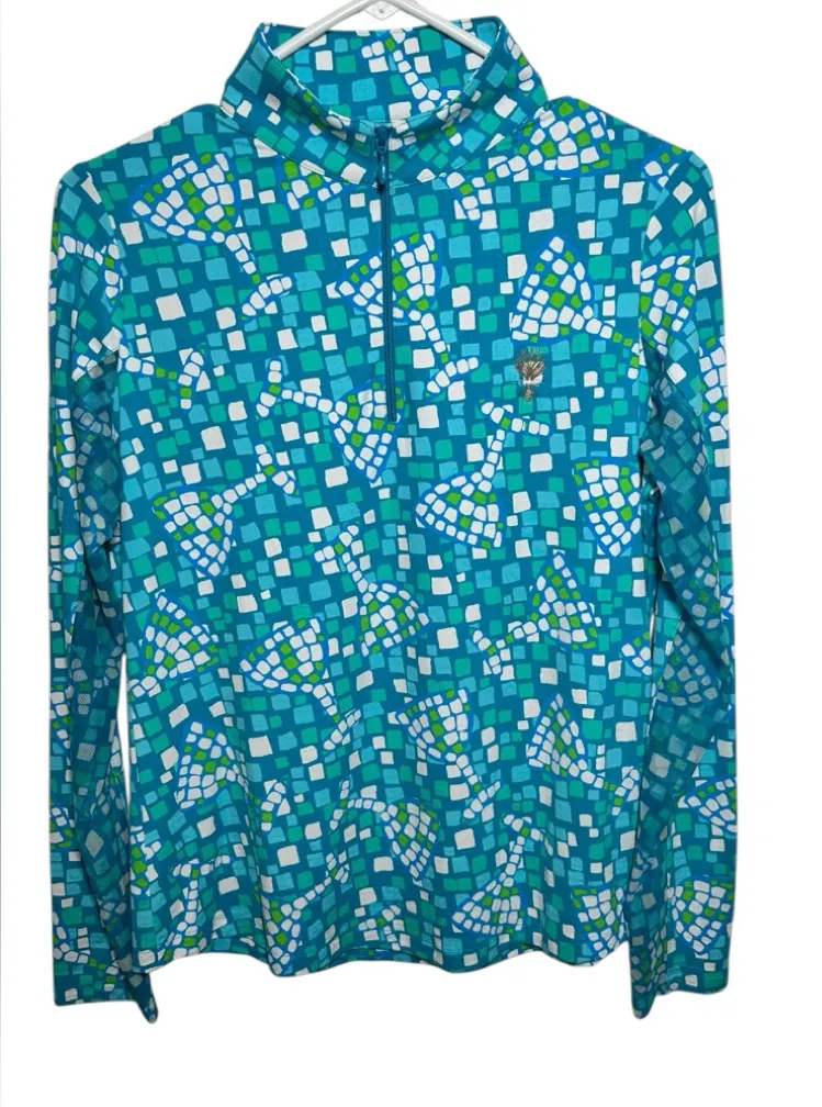 IBKUL Wine Mosaic Long Sleeve Mock Neck 1/4 Zip Golf Tennis Pickleball Size S. These are designed to keep you cool while playing your favorite sport. There is some embroidery on the front. Please see the picture. No stains or holes. Measurements: Armpit to Armpit: 18.5 inches Length: 24 inches Sleeves: 23 inches