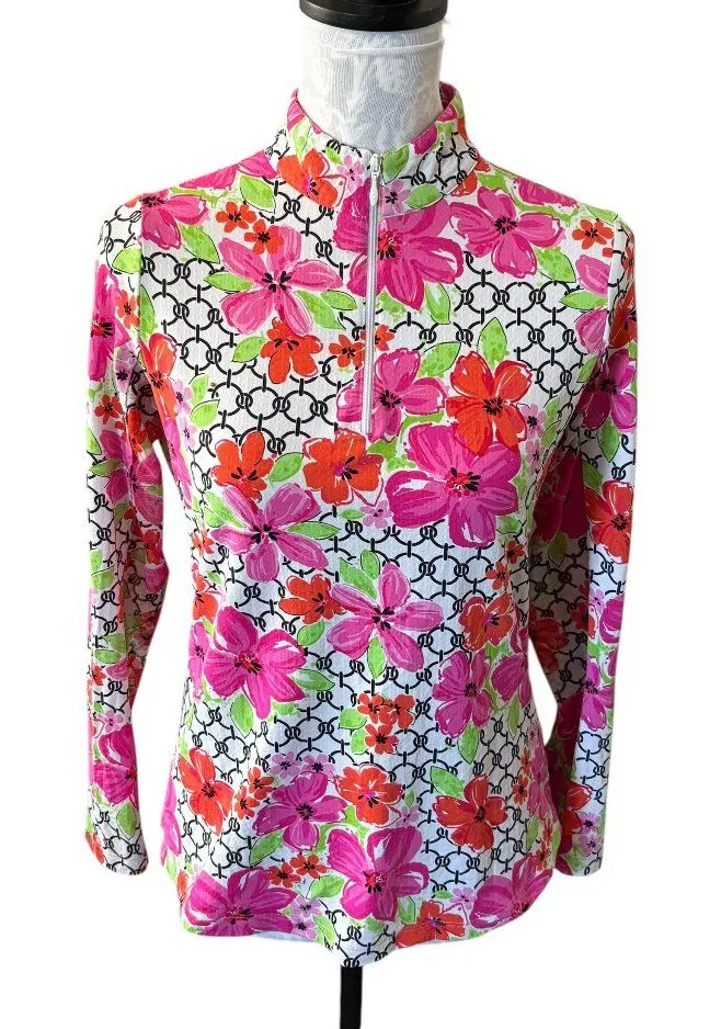 IBKUL Womens Long Sleeve Mock Neck UPF 50+ Floral Shirt Golf Athletic Small Pink - $45 - From Cathy